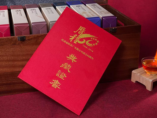 【歷程】是為紀念益陽茶廠60周年廠慶而生,并特由陳先敬先生等建廠元勛代表、公司董事長彭雄根先生、總經理陳小春先生和國家非遺茯茶制作技藝代表性傳承人劉杏益大師等親筆簽名推薦,意義深遠,彌足珍貴。每套都標有獨立典藏編號,且全球限量一萬套,乃傳世佳作、典藏臻品。